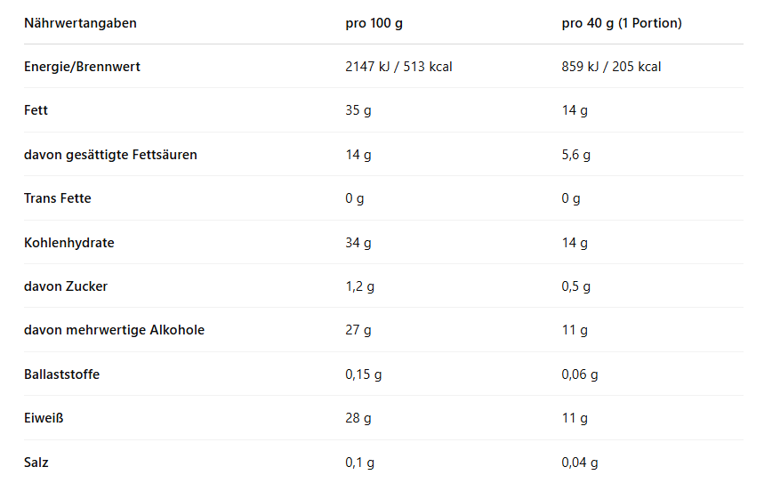 Proteinriegel enthalten im Vergleich zu herkömmlichen Schokoriegeln einen höheren Gehalt an Proteinen und in der Regel weniger Zucker.